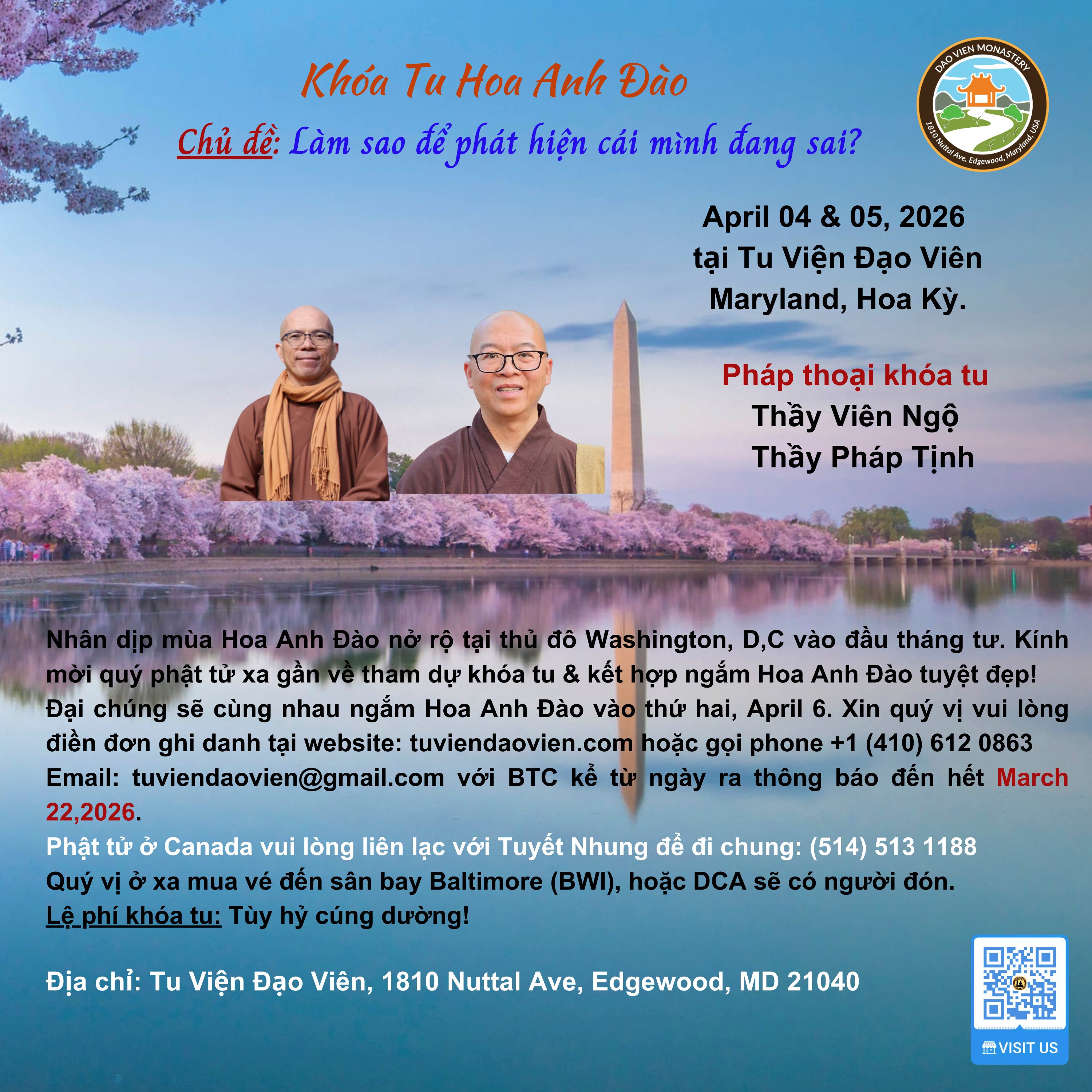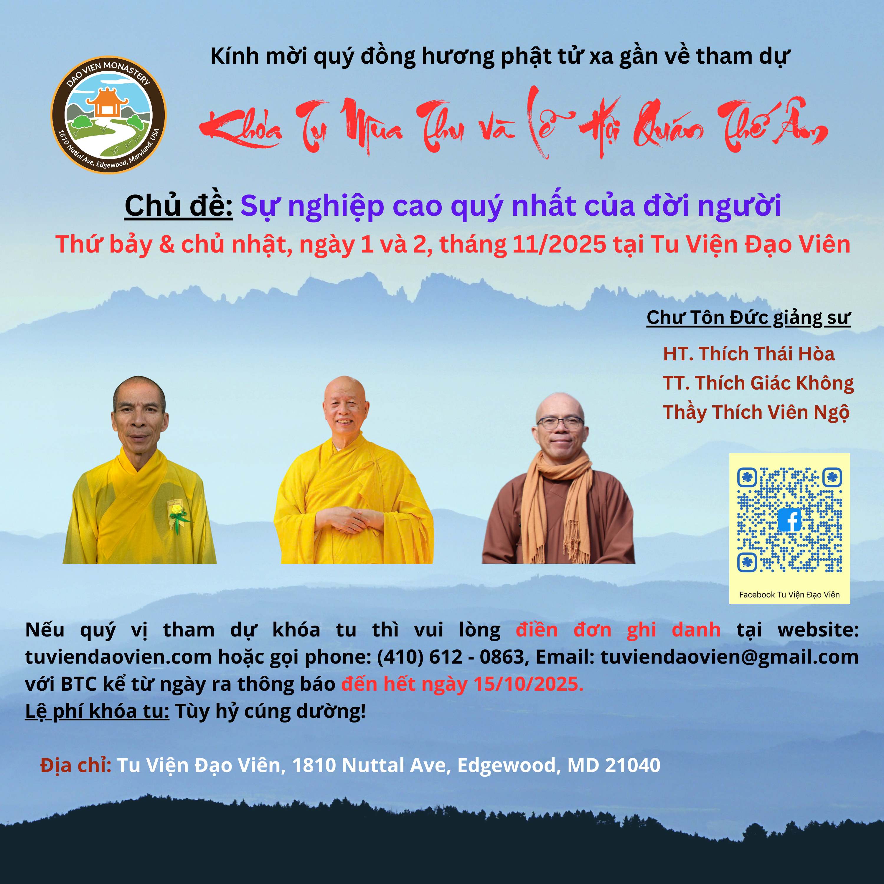 Tu Viện Đạo Viên cần sửa lại Chánh Điện nên các phật tử đã phát tâm làm chương trình này. Kính mong đại chúng dành chút thời gian đến tham dự và yểm trợ cho việc Trùng Tu Chánh Điện sớm được hoàn thành nhằm đáp ứng cho việc tu học được nhiều lợi ích an vui .