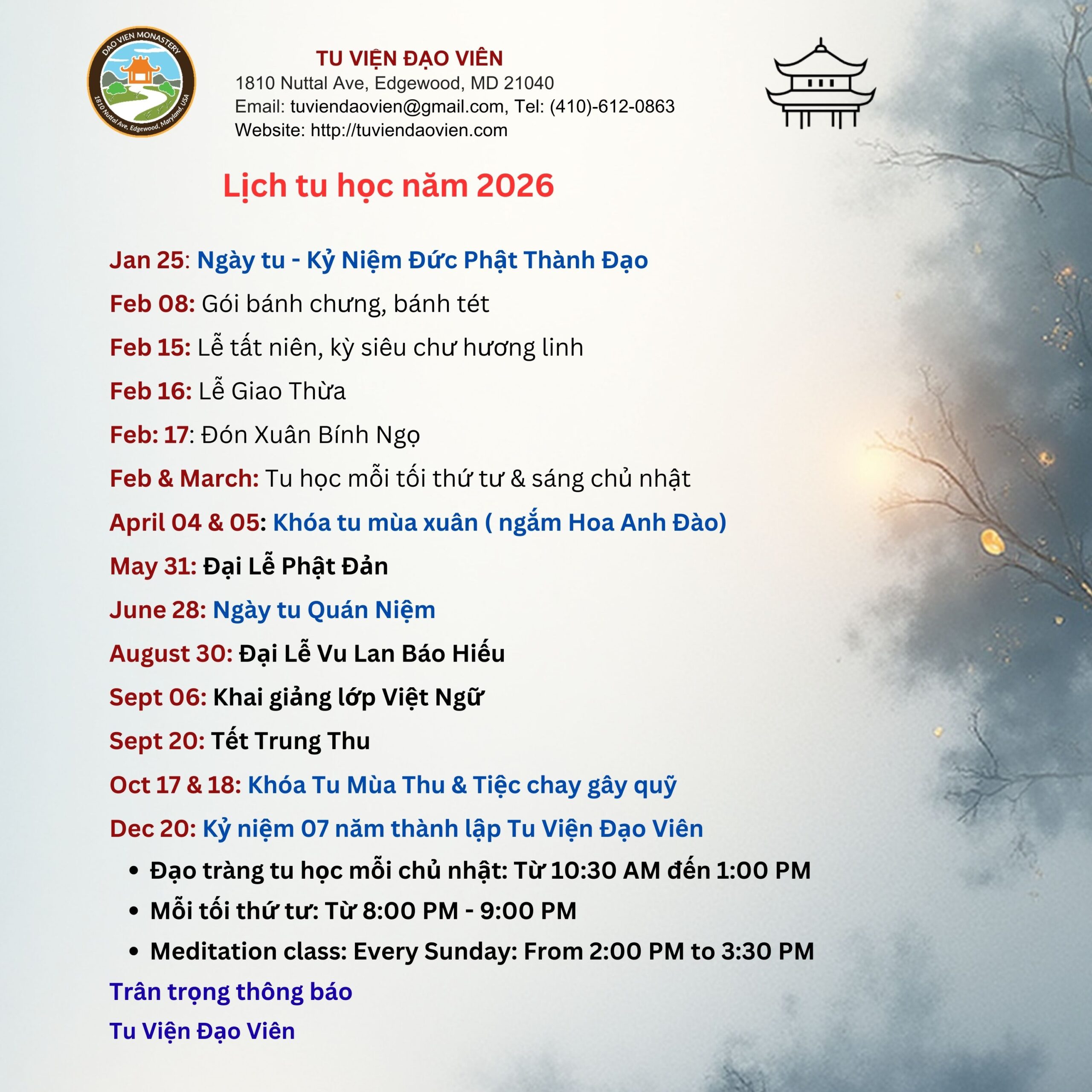 Kính chúc quý vị và thân quyến luôn luôn được mạnh khỏe an vui!